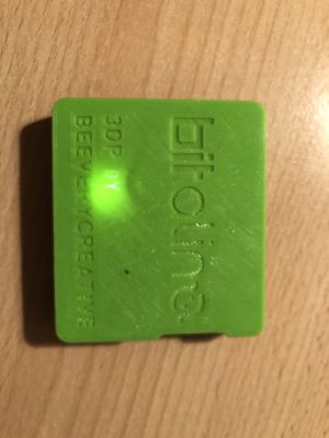 - After installing the program, turn on BITalino by sliding the black lever on the edge (see photo). After switching on, a flashing green light is visible (see photo).