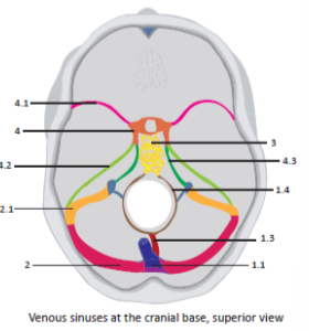 - inferior petrosal sinus (4.3): connect the cavernous sinus to jugular foramen