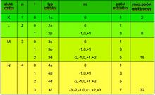 The main quantum number (n =1,2,3,...) determines the total energy of the electron and thus also the shell in which the electron is located (K for n = 1, L for n = 2, M for n = 3, N for n = 4,...). For the energy of the electron, the relation applies:
