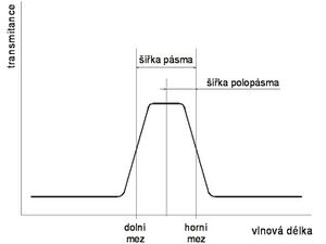 Polychromatic light then passes through a monochromator. The simplest and cheapest option is to include a suitable interference filter in the optical path. Filters for practically any wavelength in the ultraviolet and visible regions are commercially available today. There are several types of filters, the appropriate combination of which creates a filter with the required properties. Low-pass filters pass light of wavelengths shorter than a certain limit (cut-off). High-pass filters, on the other hand, only let in light that has a longer wavelength than the cutoff wavelength of the filter. Bandpass filters pass a certain range of wavelengths. Since the boundaries are not always sharp, the lower and upper limits are usually the wavelength for which the filter has a 50% transmittance compared to the wavelength it transmits best. Sometimes the center wavelength that the filter passes and the bandwidth (or half-bandwidth) are also given.