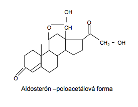 Aldosterone - The methyl group at position 18 is oxidized to an aldehyde group and a hemiacetal bond is formed between it and the hydroxyl group. Despite its low secretion, it is the most effective mineralocorticoid. It ensures the retention of Na+ and the excretion of H+ and K+.